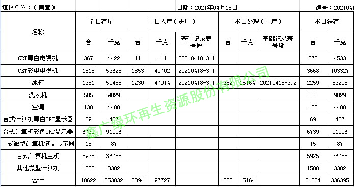 2021.04.18回收拆解統(tǒng)計(jì)表