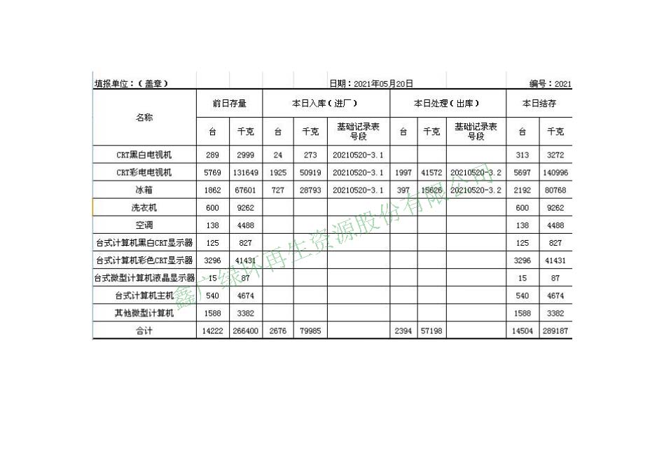 2021.05.21回收拆解統(tǒng)計表
