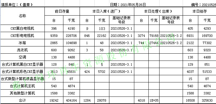 2021.05.26回收拆解統(tǒng)計表