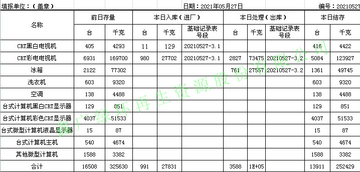 2021.05.27回收拆解統(tǒng)計表