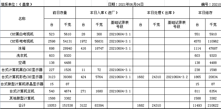 2021.06.04回收拆解統(tǒng)計(jì)表