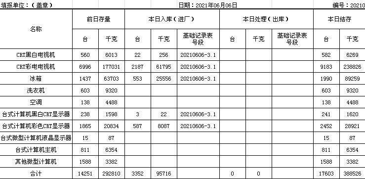2021.06.06回收拆解統(tǒng)計表