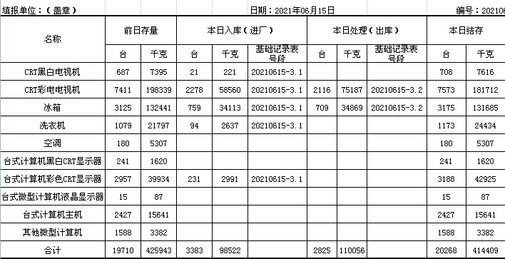 2021.06.15回收拆解統(tǒng)計表