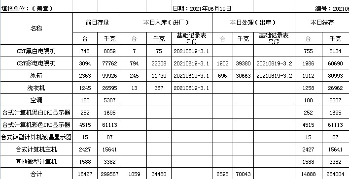 2021.06.19回收拆解統(tǒng)計(jì)表