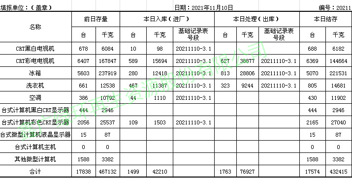 2021.11.09回收拆解統(tǒng)計(jì)表