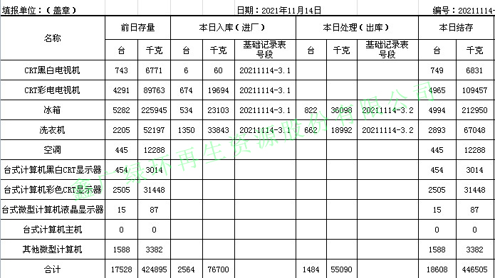 2021.11.14回收拆解統(tǒng)計(jì)表