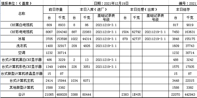 2021.12.19回收拆解統(tǒng)計表