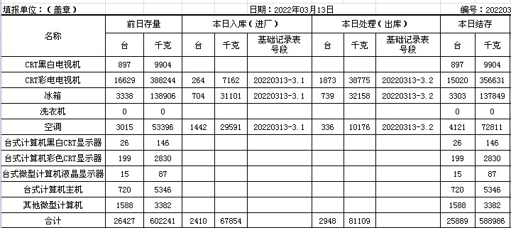 2022.03.13回收拆解統(tǒng)計(jì)表