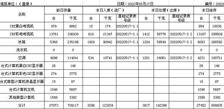 2022.05.17回收拆解統(tǒng)計表