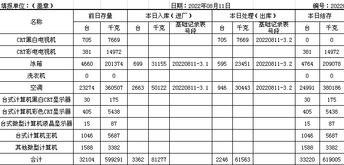 2022.08.11回收拆解統(tǒng)計(jì)表
