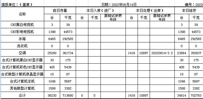 2022.08.14回收拆解統(tǒng)計表