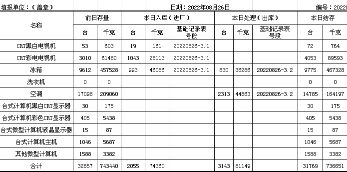 2022.08.26回收拆解統(tǒng)計(jì)表