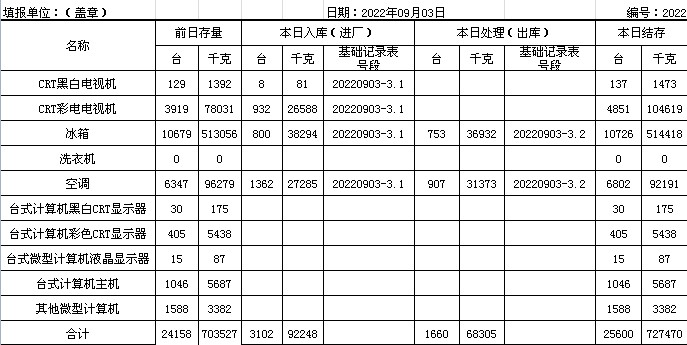 2022.09.03回收拆解統(tǒng)計(jì)表