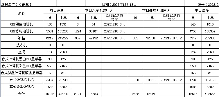 2022.12.18回收拆解統(tǒng)計(jì)表