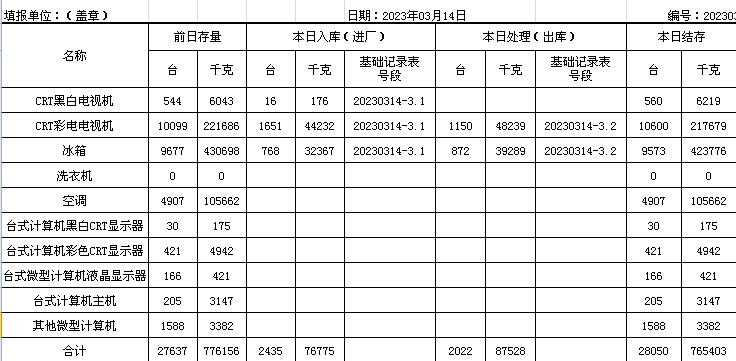 2023.03.14回收拆解統(tǒng)計(jì)表