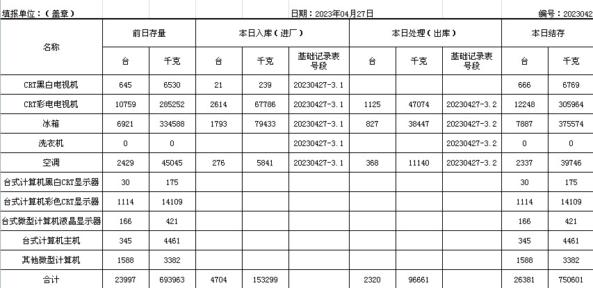 2023.04.27回收拆解統(tǒng)計(jì)表
