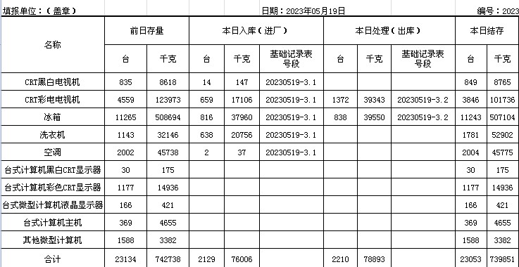 2023.05.19回收拆解統(tǒng)計(jì)表