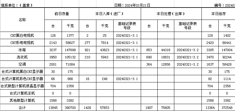 2024.03.21回收拆解統(tǒng)計表