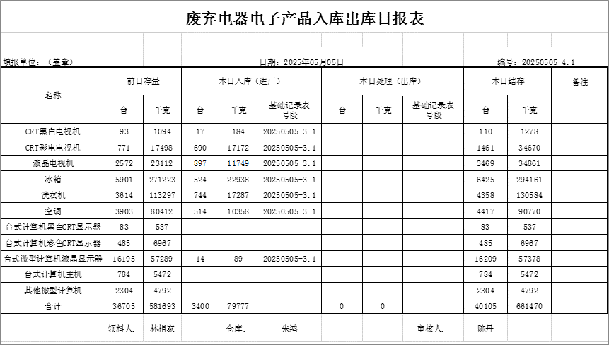 2025.05.04回收拆解統(tǒng)計(jì)表