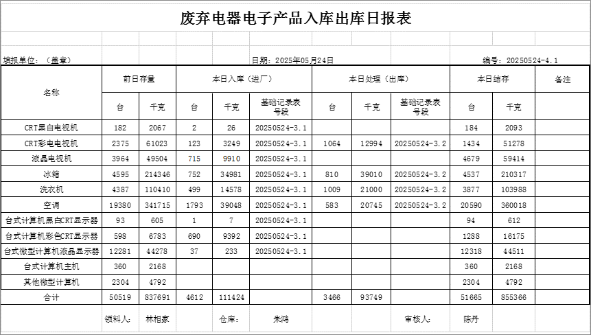 2025.05.24回收拆解統(tǒng)計(jì)表