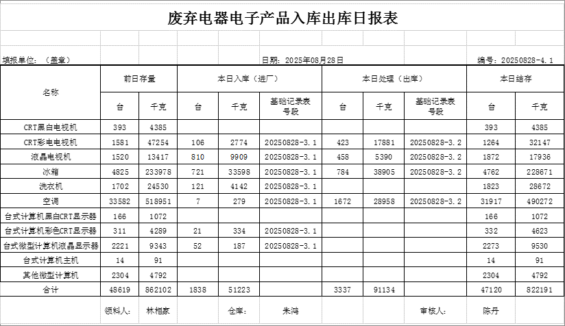 2025.08.28回收拆解統(tǒng)計(jì)表
