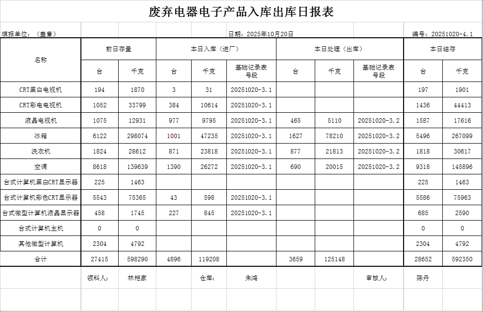 2025.10.20回收拆解統(tǒng)計(jì)表