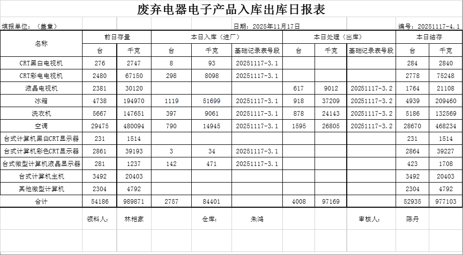 2025.11.17回收拆解統(tǒng)計(jì)表