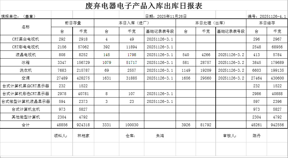 2025.11.26回收拆解統(tǒng)計(jì)表