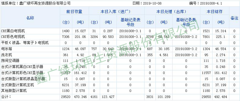 2019.10.08回收拆解統(tǒng)計(jì)表