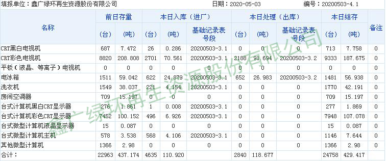2020.05.04回收拆解統(tǒng)計(jì)表
