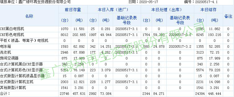2020.05.17回收拆解統(tǒng)計(jì)表