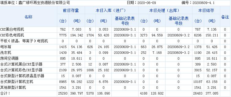 2020.06.09回收拆解統(tǒng)計(jì)表