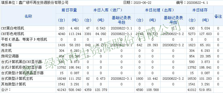 2020.06.22回收拆解統(tǒng)計(jì)表