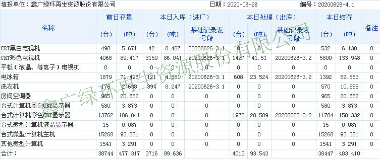 2020.06.26回收拆解統(tǒng)計(jì)表