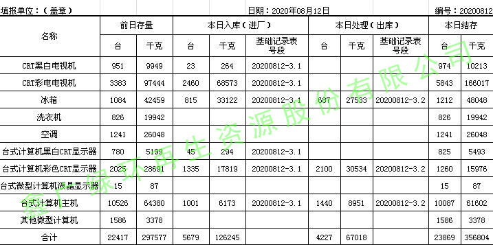 2020.08.12回收拆解統(tǒng)計表