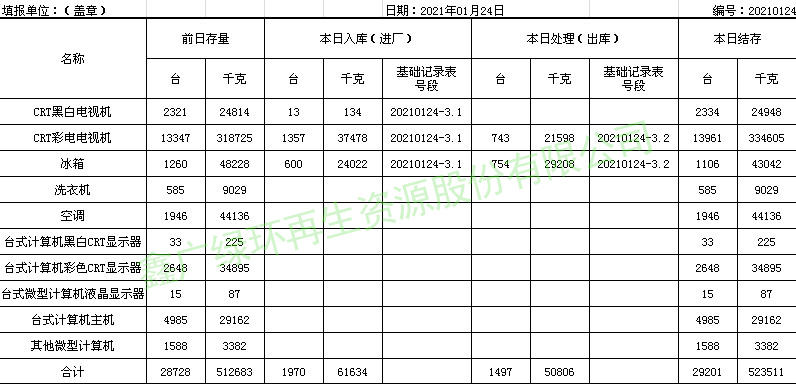 2021.01.24回收拆解統(tǒng)計(jì)表