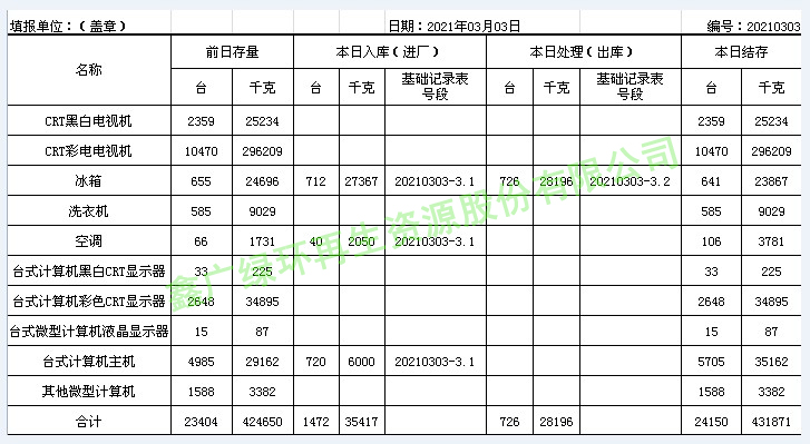 2021.03.03回收拆解統(tǒng)計(jì)表