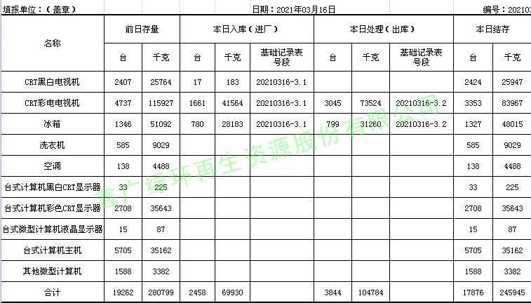 2021.03.16回收拆解統(tǒng)計表
