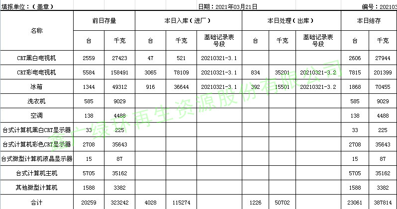 2021.03.21回收拆解統(tǒng)計(jì)表