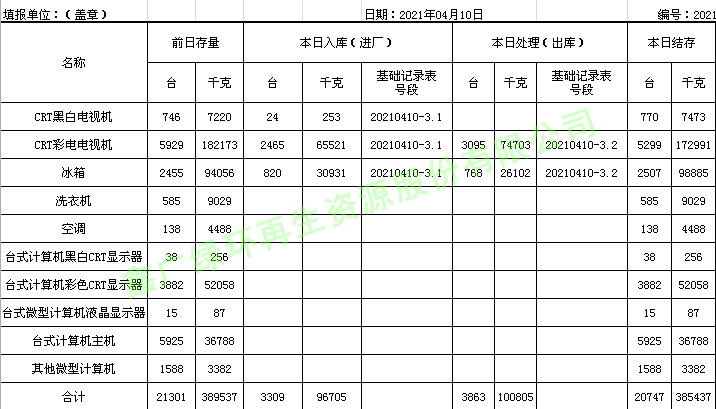 2021.04.09回收拆解統(tǒng)計(jì)表