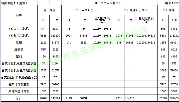 2021.04.13回收拆解統(tǒng)計(jì)表