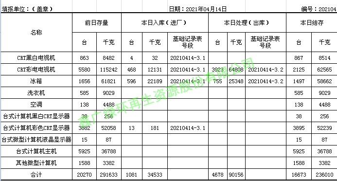 2021.04.14回收拆解統(tǒng)計(jì)表